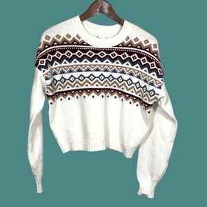 Hollister Cozy White Patterned Sweater XS