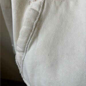 Hollister white hoodie with navy embroidered lettering. Super soft and the perfect fit! Some yellowing on the end of the sleeves and small stains on the front as pictured. Otherwise in great condition! Size S