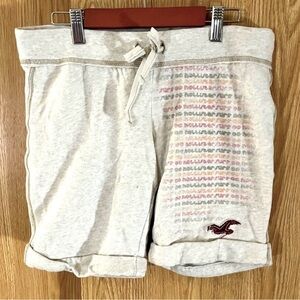 Hollister Cream Logo Fleece Athletic Shorts with Drawstring Waistband