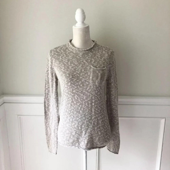 Hollister Crew Neck Burnout Pocket Sweater Tan XS