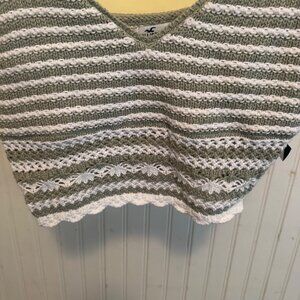 Hollister Crochet Knit Striped Tank Top M Green & White Cotton Blend NWT