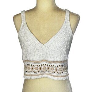 Hollister Crochet Tank Large White Cropped Festival Boho Fairy Adjustable Straps