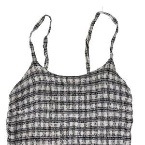 Hollister Crop Top Smocked Stretch Tank Black & White Striped Preppy Casual With Adjustable Straps
