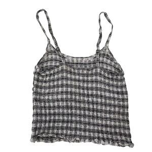 Hollister Crop Top Smocked Stretch Tank Black White Striped Preppy Size S Casual