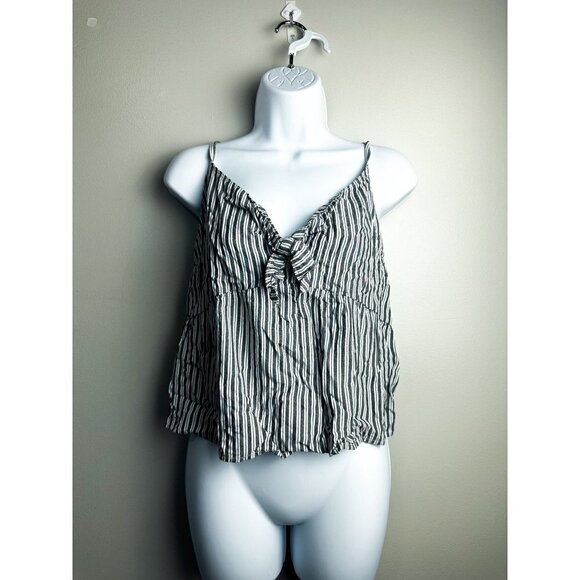 Hollister Cropped Peplum Tie Tank Top Gray White Stripe V Neck Womens Medium