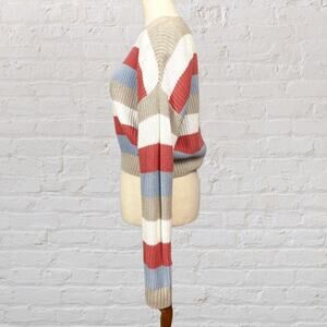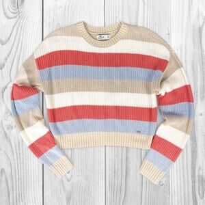 ❤️ Classic Hollister cozy! Red, rust, white & blue striped waffle-knit sweater in cropped, relaxed fit. Super soft cotton-acrylic blend — warm, lightweight, and perfect for layering. Like new, worn gently once.