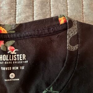 Hollister Curved Hem Tee. Size medium. Must have collection. Snake and floral print. Small holes near tag.