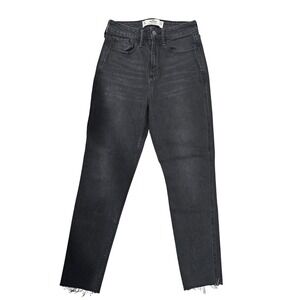 Keywords: Hollister, High Rise, Mom Jeans, Vintage Stretch, Black Wash, Denim, Frayed Hem, Casual Jeans, Comfortable Jeans
