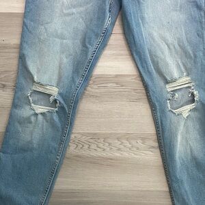 Trendy high rise jeans with distressed details. Perfect for casual wear. Soft and stylish.