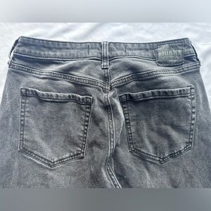Trendy and flattering Hollister Curvy High-Rise Mom Jeans in a washed gray finish. Designed with a vintage-inspired look, these jeans feature a high-rise waist, slim hip fit with room through the thigh, and raw-cut frayed hems for a laid-back vibe.