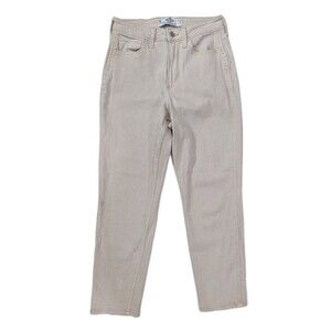 Hollister Curvy Mom Jeans Cream High Rise Straight Leg Cotton