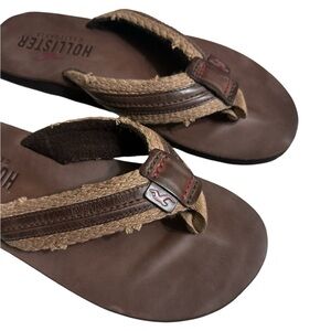 Comfortable dark brown and tan flip flops by Hollister. Ideal for everyday use.