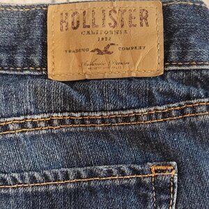 Get classic casual style with these gently worn Hollister low-rise jeans in a versatile dark wash! Featuring the iconic Hollister seagull logo and a comfortable regular fit. The label indicates a size 1R, corresponding to a W25 (25-inch waist) and L33 (33-inch length). Perfect for everyday wear or a Y2K-inspired look! Condition is excellent with minimal signs of wear.