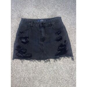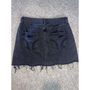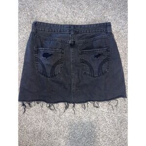 Hollister Distressed Black Denim Jean High Rise Mini Skirt Raw Hem Womens 7 / 28