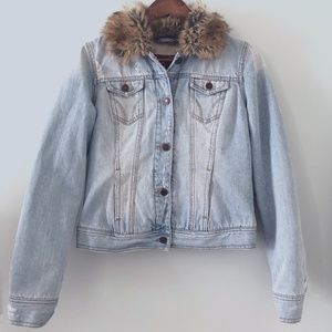 Hollister Distressed Faux Fur Trimmed Jean Jacket Size M