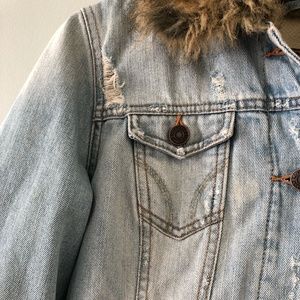 Hollister Distressed Faux Fur Trimmed Jean Jacket