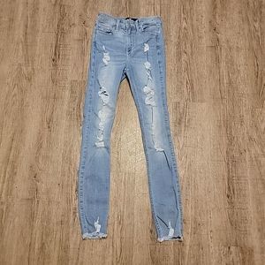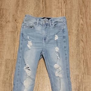 Hollister Distressed High Rise Super Skinny Jeans ~ Sz 0R ~ Blue ~ 28.5" Inseam ~ 12" Across Waist ~ 15" Across Hips ~ 10" Rise