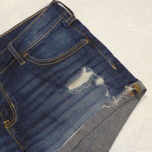 Hollister ✦ Distressed Jean Shorts ✦ W28 Size 7 Dark Wash Frayed Hem Cutoffs Y2K