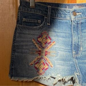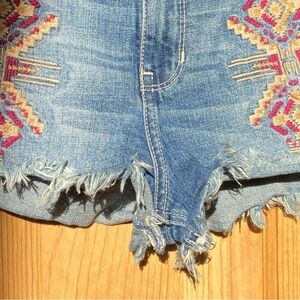 Hollister Distressed Short-Short High Rise Raw Hem Embroidered Aztec Denim Shorts Size 7