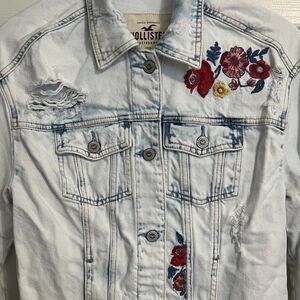 Hollister Distressed Embroidered Floral Jean Jacket Size XS
