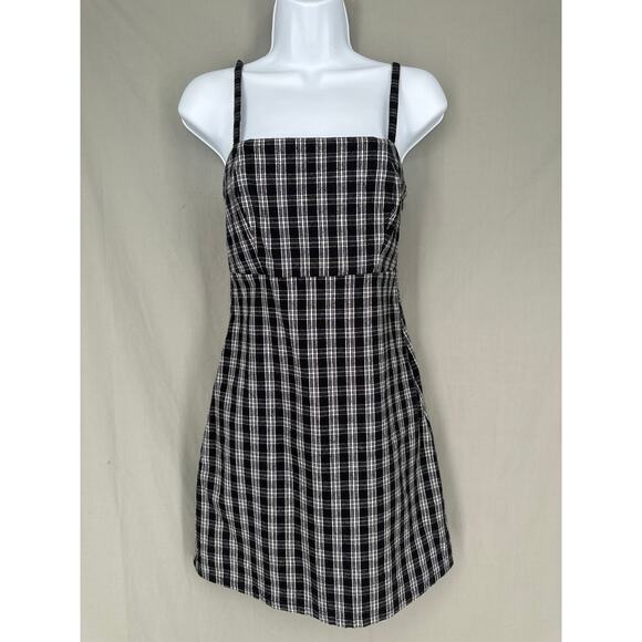 Hollister Dress Women XS Black Plaid Mini Grunge Y2K 90s Stretch Academia Preppy