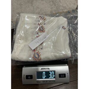This Hollister scarf features intricate embroidery with tassel accents. Made from a cotton, the scarf measures 30 inches square, providing an elegant touch to any outfit.