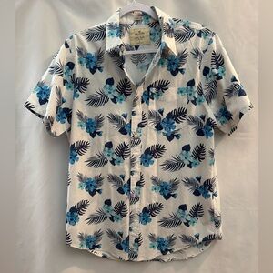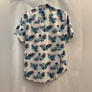 This Hollister Epic Flex Short Sleeve Button Down Hawaiian Print Shirt was worn a few times. It is a white back ground with different shades of blue. It is a size large.