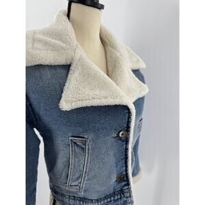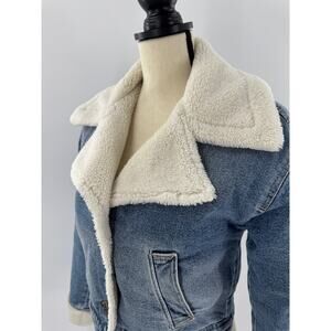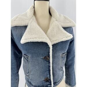 Hollister Faux Fur Lined Sherpa Denim Jacket Crop Jean Jacket XS