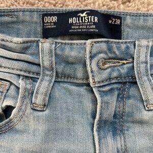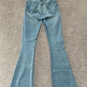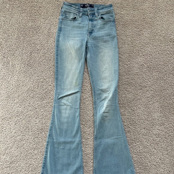 Hollister Light Wash Flared Jeans! Super soft and flexible, great for everyday wear! Pairs with almost everything, which makes it a great piece for your wardrobe!