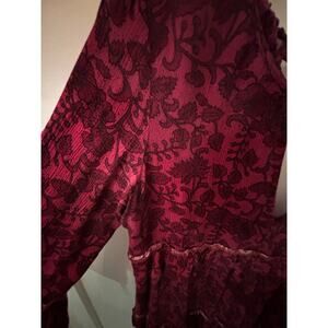 Hollister Burgundy Boho Bell Sleeve Dress – Sheer Floral Ruffle Mini, Size Small