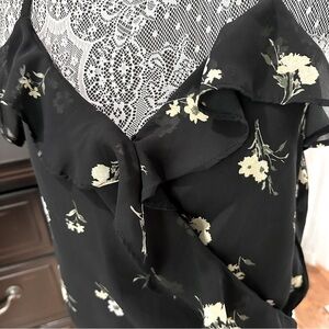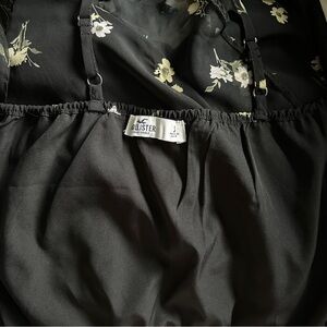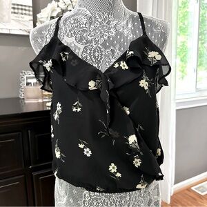 Hollister Floral Black Crisscross Spaghetti Ruffle Top Size S
