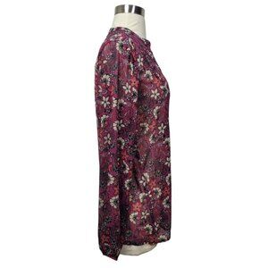 Add a touch of boho charm to your wardrobe with this Hollister Floral Chiffon Blouse. Featuring a vibrant mix of magenta, burgundy, and cream tones with turquoise accents, this sheer top offers a flowy fit and lightweight feel perfect for layering. The deep split neckline and elastic cuffs give it a relaxed yet feminine vibe, ideal for both casual days and weekend outings.
