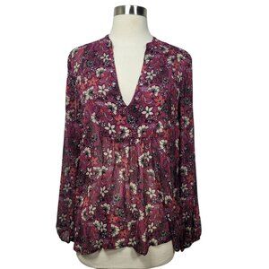Hollister Floral Sheer Chiffon Boho Blouse Size Small Long Sleeve Peasant Top