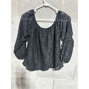 Hollister Floral Silk Shirt for Women Net Blouse Long Sleeves Black Medium Size