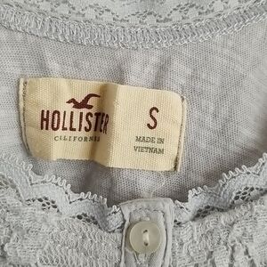 Hollister tank top size small. Sleeveless. Lace overlay on front side. Buttons down the front. Hollister logo tag on side seam. Pit to pit 15". Shoulder to hem 21". No holes or stains. Smoke Free. One day shipping.