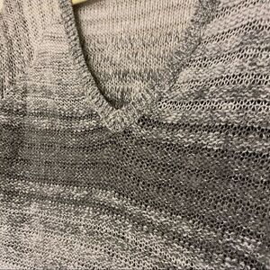 Hollister Gray Metallic Stripe V Neck Sweater lightweight open knit Y2K S