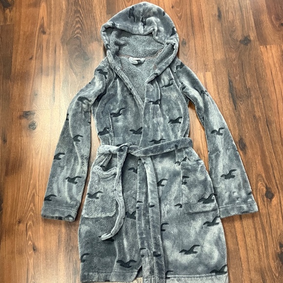 Hollister Gray Seagull Fleece Plush Hooded Robe XXS