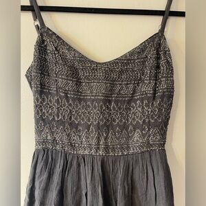 This Hollister sundress in a versatile gray hue features a sequined bodice with spaghetti straps, offering a comfortable and stylish fit.