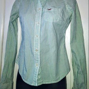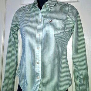 Hollister Green Stripe Blouse, Junior Small