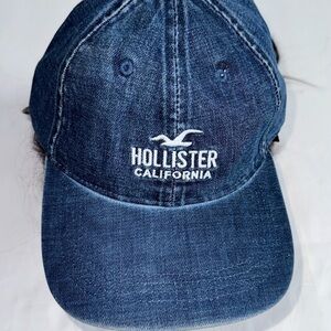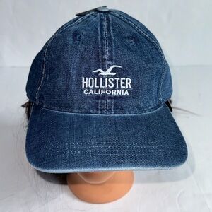 Hollister Hat Cap Strap Back Blue Jean Denim Embroidered