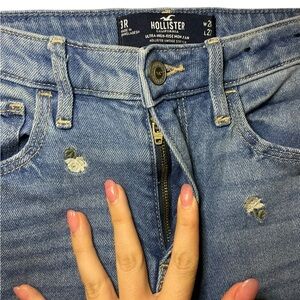 Hollister High Rise Blue Mom Jeans with Floral Embroidery