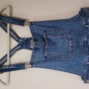 Hollister High Rise Crop Boyfriend Overall Blue Denim Distressed Classic Stretch size XL
