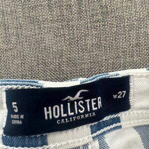 Hollister High Rise Cuffed Shorts Striped Blue White Button Up 5/27 Waist Cotton