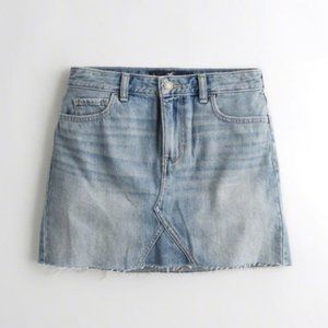Flattering high-rise skirt made with rigid, non-stretch denim treated with washes for a super soft, lived-in feel. Faded whiskering and raw-cut hem.