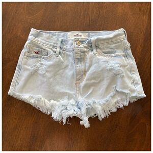 Hollister High Rise Distressed Festival Fray Hem Cut Off Shorts Light Wash Sz 25