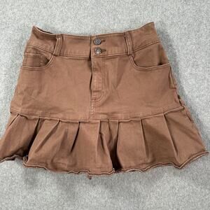 Hollister High Rise Mini Skirt Size X-Small Brown Denim Pleated Hem Y2k