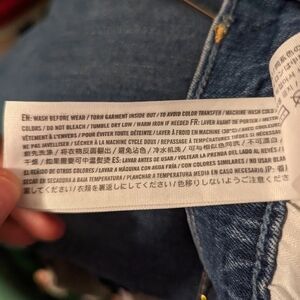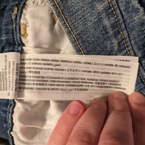 These shorts are in gently used condition. They are factory distressed with rips and tears. They are a medium weight denim with some stretch. Please see photos for details.