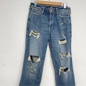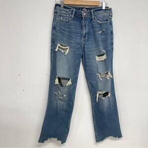 Hollister High Rise Slim Straight Jeans Distressed Raw Hem Ankle Length Women 28