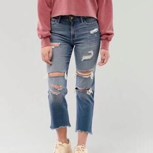 Hollister High Rise Slim Straight Jeans Distressed Raw Hem Ankle Length 28