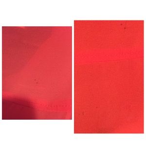 Really pretty, sheer reddish, dark coral colored blouse from Hollister. Wore once or twice. Unfortunately there are a few black dots and a small snag (pictured). Not sure if the dots will come out, haven't tried. And because of the color and material, the snag is hardly noticeable--cut the little string and it'd be even less noticeable. Really pretty top, hate to get rid of it, but I just never feel like wearing it.